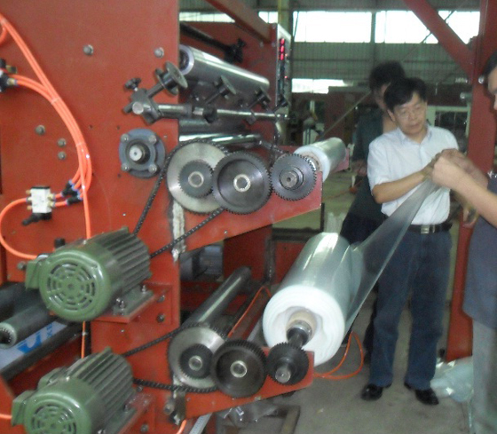 該機組采用下吹及自溢水冷形式,結(jié)合高塑化,長徑比大的擠出系統(tǒng),并配套高精度模具,使其制品具有極高的透明度,良好的阻隔性,熱封性等特點,是生產(chǎn)高檔包裝薄膜的理想選擇。