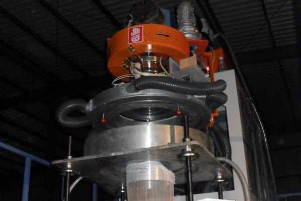 3、模頭鍍硬鉻,其結(jié)構(gòu)為螺旋芯軸式,擠出的熔融料均勻,吹制的薄膜光潔度好;風(fēng)冷裝置結(jié)構(gòu)為迷宮型,出風(fēng)量均勻。采用循環(huán)水冷卻,從而使生產(chǎn)的薄膜達(dá)到最佳的透明度。
